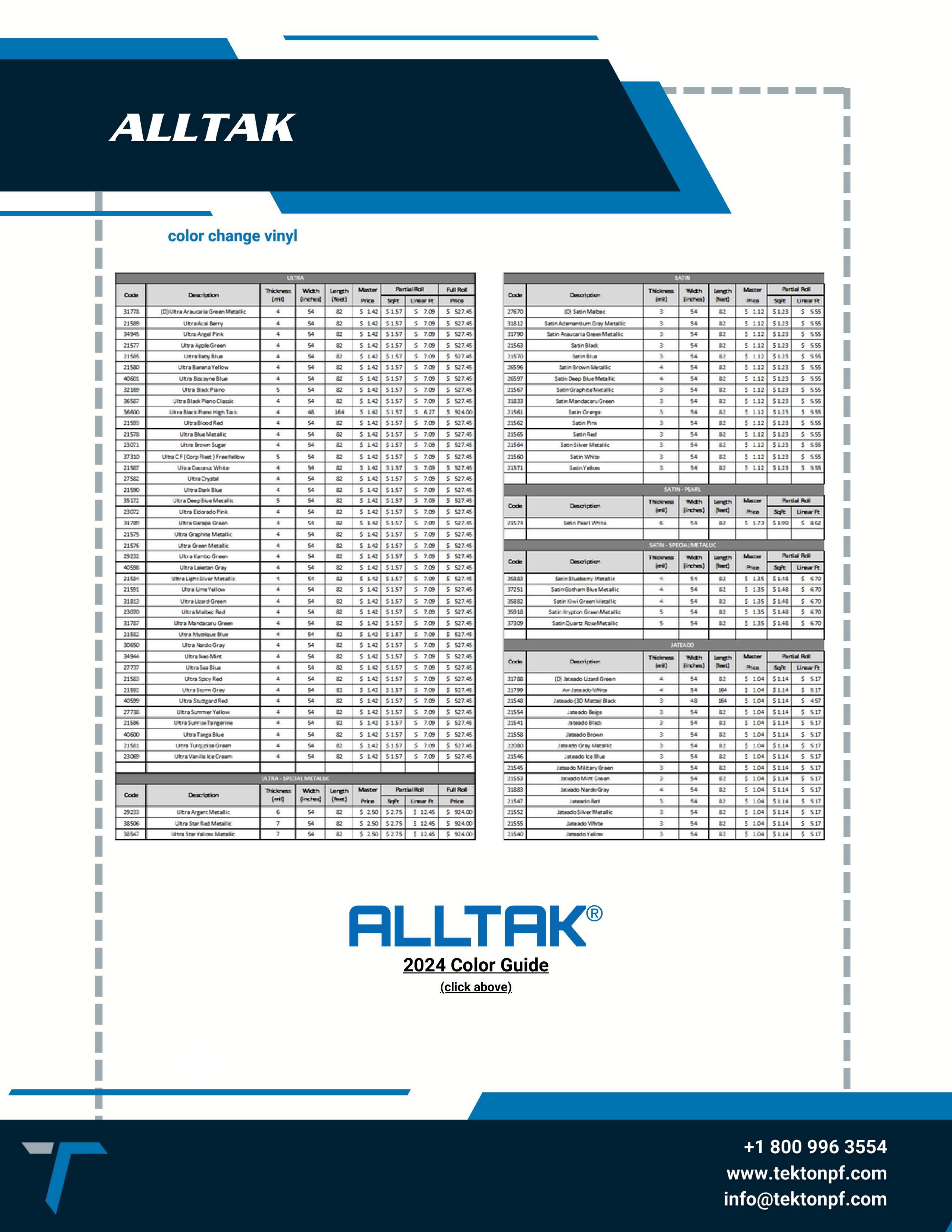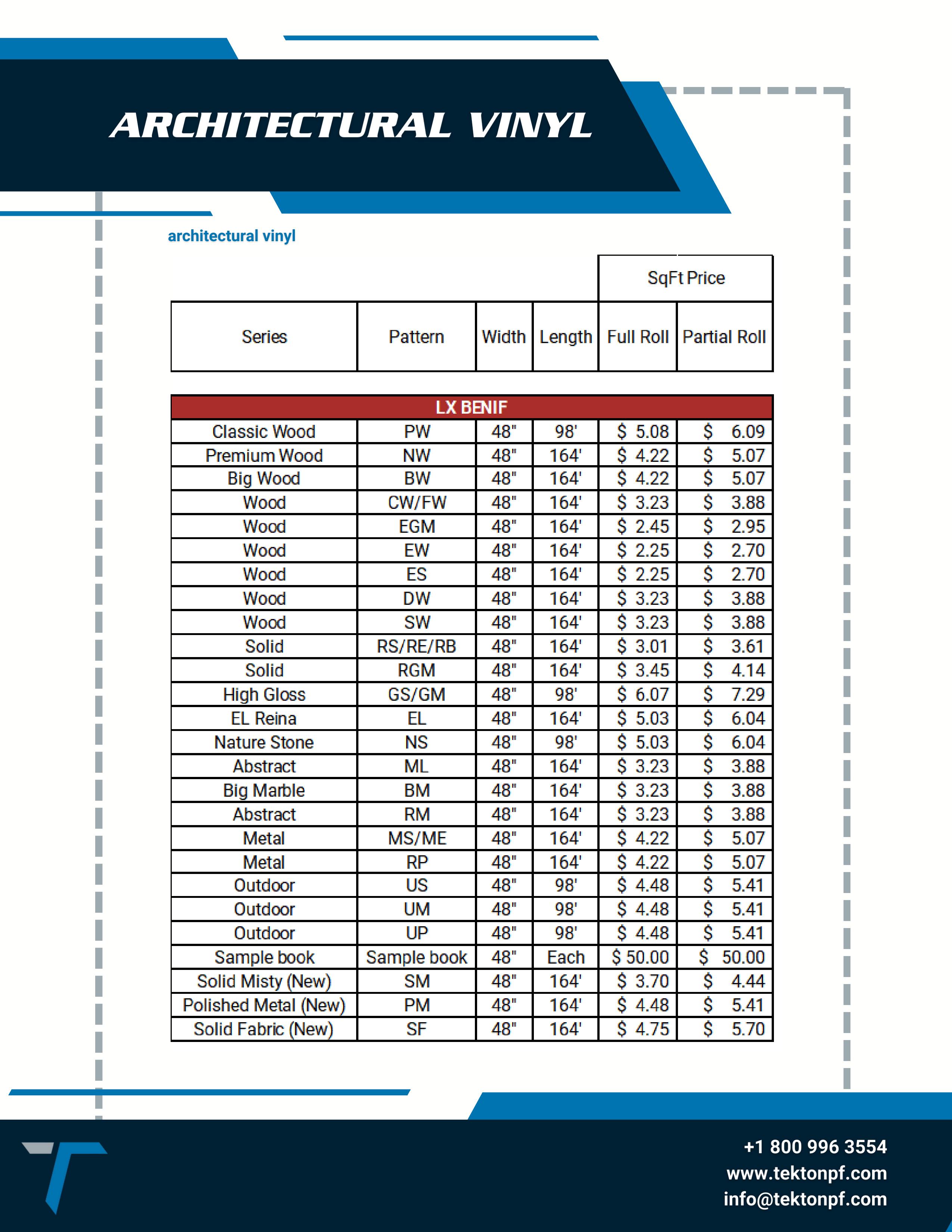 Tekton Performance Films - Pricing Guide - USA