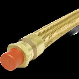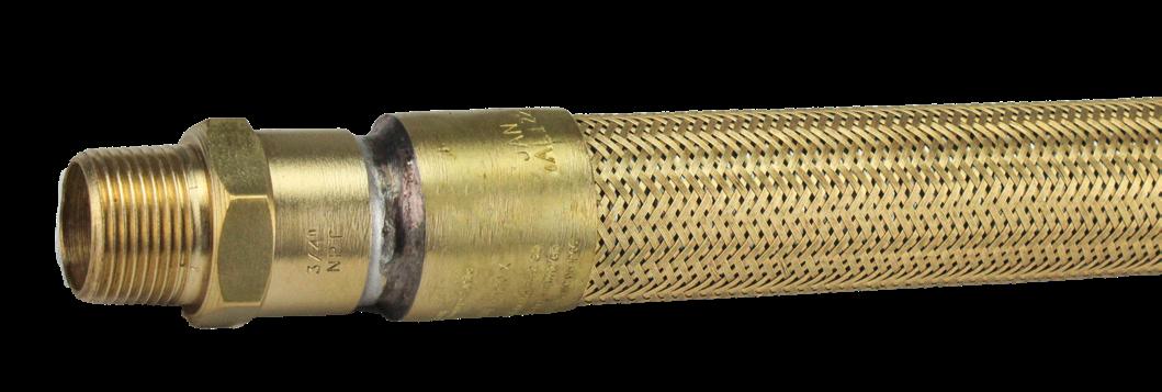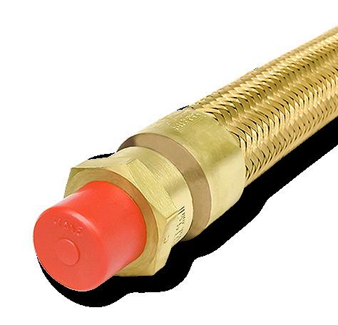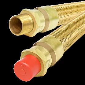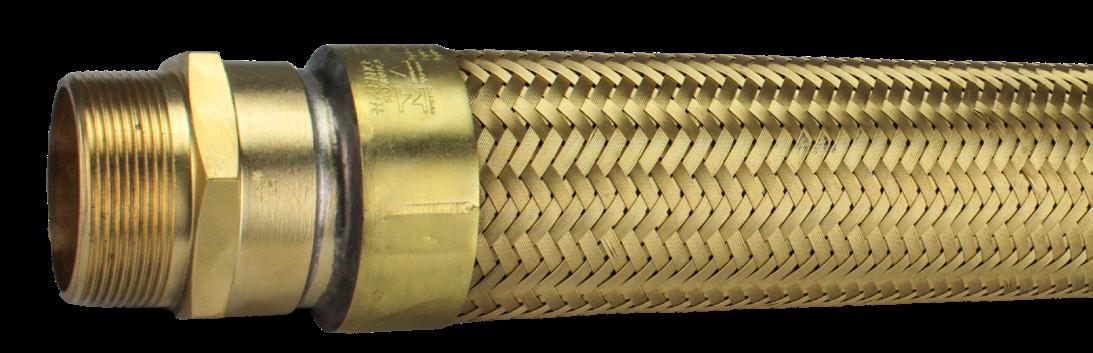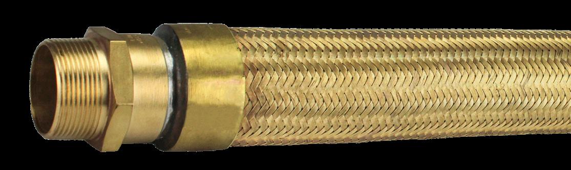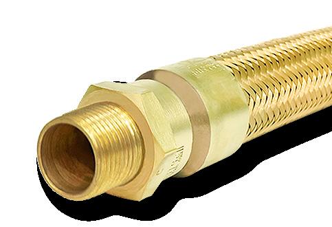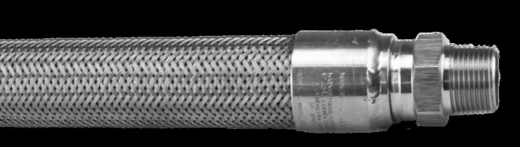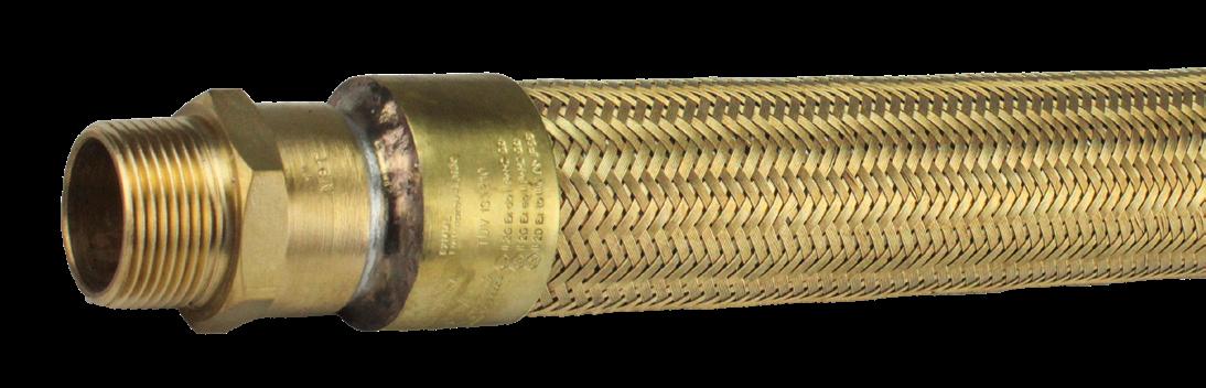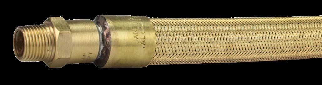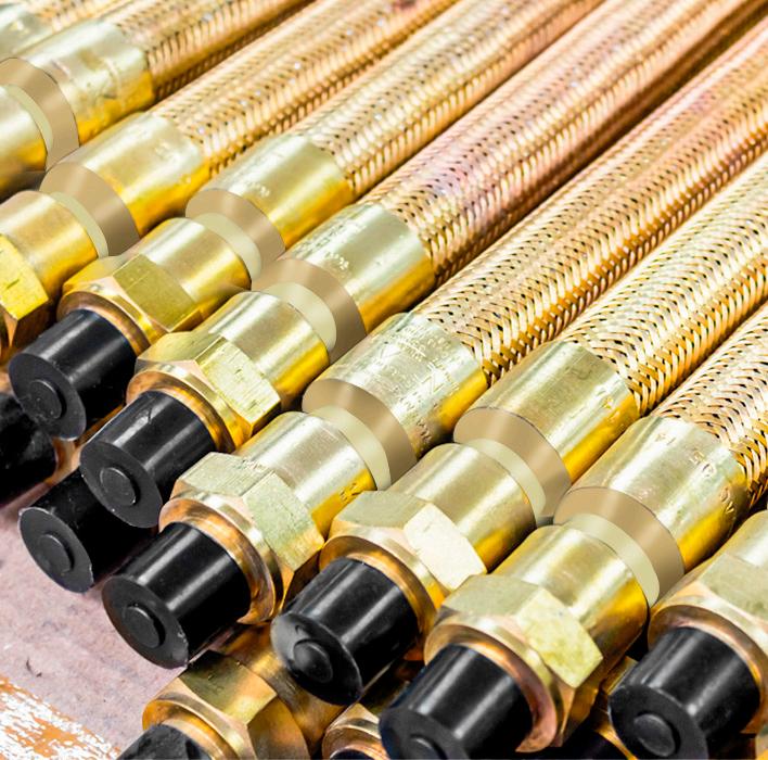 Tubo flexível de cobre espiralado, à prova de explosão, revestido externamente com uma trança de fio de liga de cobre.