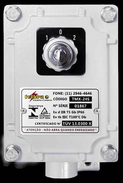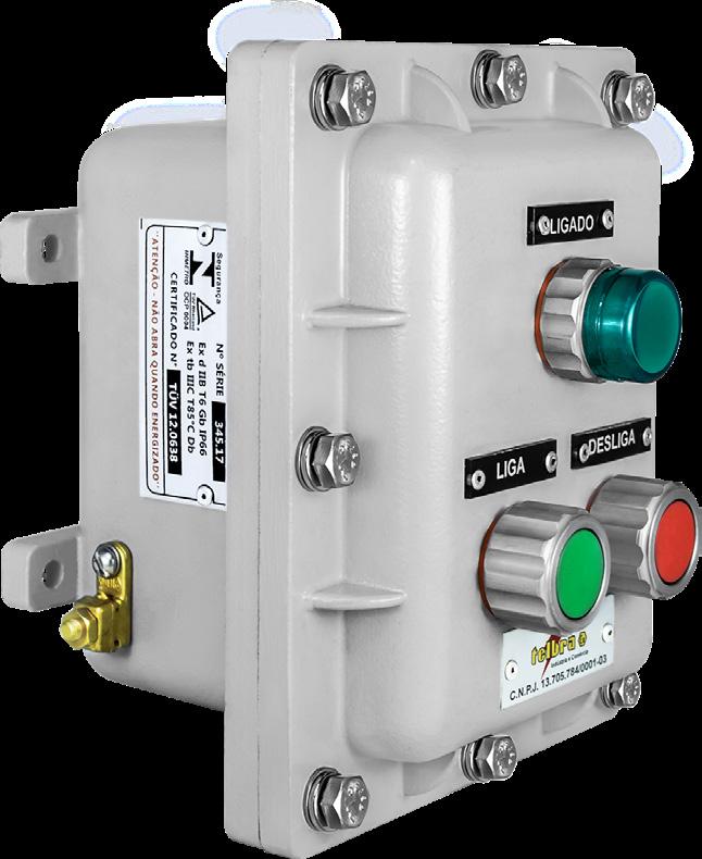 Central de Vendas: 55 11 2946-4646 / www.telbra.com.br / telbra@telbra.com.br INDÚSTRIA 100%NACIONAL PRONTA ENTREGA! CONSULTE-NOS Materiais elétricos para atmosfera explosiva O GRUPO TELBRA investe pesado numa LOGÍSTICA DE DISTRIBUIÇÃO BEM DEFINIDA e uma gestão de estoque inteligente PARA ATENDER RAPIDAMENTE TODOS OS PEDIDOS DE NOSSO CLIENTES. Conduletes IP66/IP66W Tubo Flexível Ex TTFX Unidades Seladoras Ex d TUSX/VH Conexões com Normas ABNT NBR e IEC Painéis Ex Conduletes Ex d/ Ex t/IP66 ACESSE NOSSO SITE