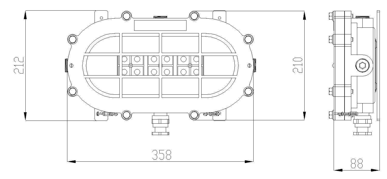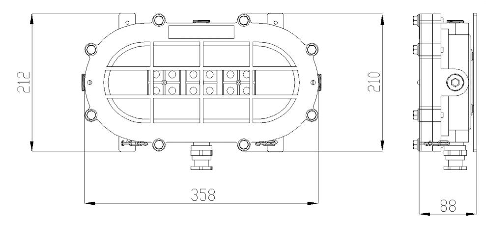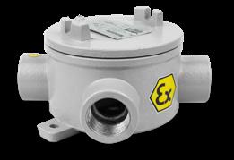 Corpo fundidos em liga de aluminio copperfree. Caixa de ligação fundida em liga de alumínio copper-free, com 2 entradas roscadas; M16; M20 ou M25. Parafusos e arruelas fabricados em aço inox.