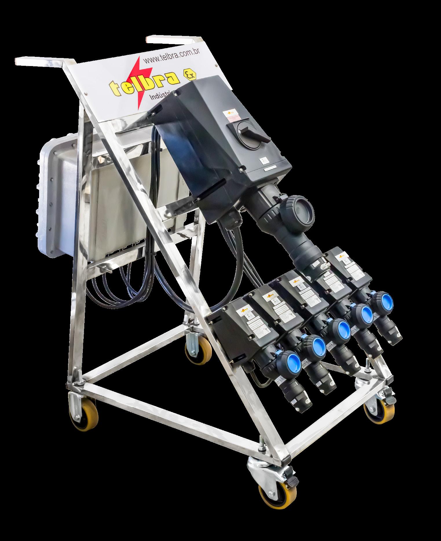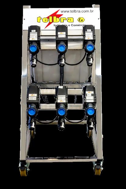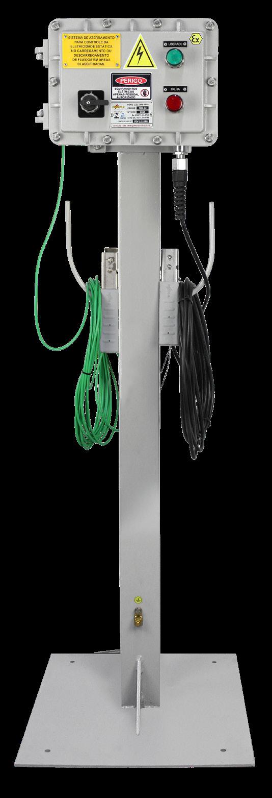 Fornecido com pedestal em aço carbono galvanizado e pintura eletrostática, 10m de cabo com garra (Carretel de aterramento opcional) .