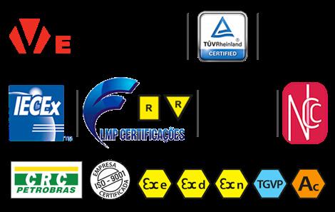 Normas: ABNT NBR IEC 60079-0, ABNT NBR IEC 60079-1, ABNT NBR IEC 60079-11, ABNT NBR IEC 60079-31 e ABNT NBR IEC 60529