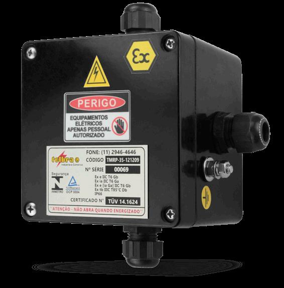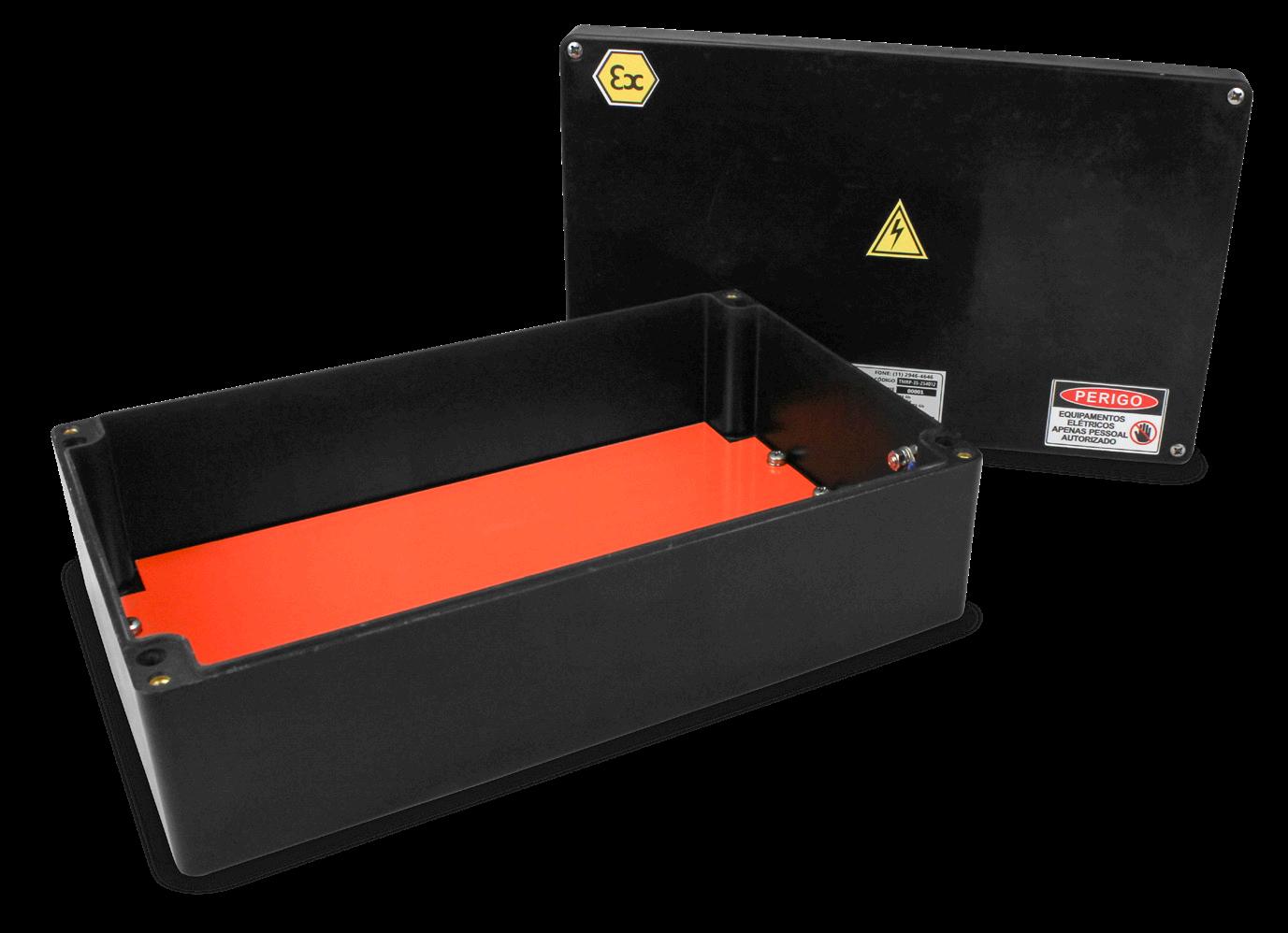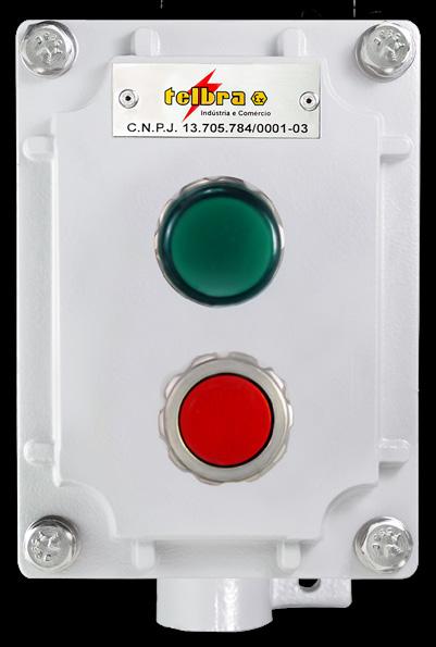 Equipamento fabricado em poliéster. Pode ser fornecido com interruptores, botoeiras, sinaleiros, chaves seletoras. Grupo de gases Ex ed IIC T6 Gb IP66 (zonas 1 ou 2), IP66, Grupo de poeiras combustíveis Ex tb IIIC Db T85°C Db (zonas 21 ou 22), Normas ABNT NBR IEC 60079-0, 60079-7, 60079-31 e 60529