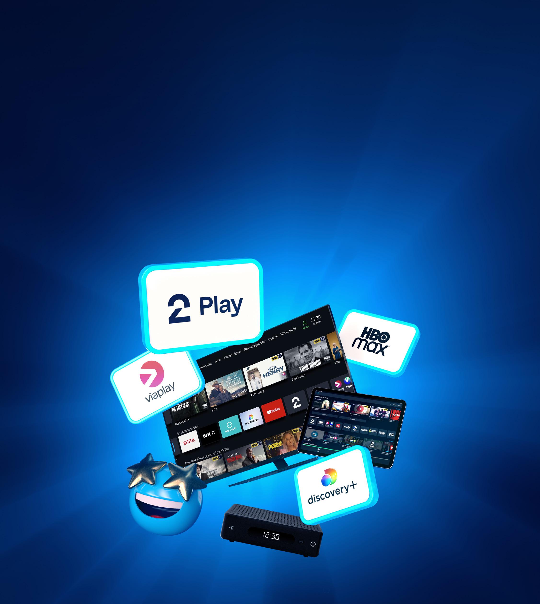 Skreddersy din egen TV- og strømmepakke. Du kan velge strømmetjenestene HBO Max, Discovery+, Viaplay, TV 2 Play og mye annet spennende innhold inn i TV-abonnementet ditt – uten ekstra kostnader. Med innholdsvelgeren får du alltid med dine favoritter, du velger selv det innholdet du vil se. Du får en basispakke og 120 poeng som du kan bruke til å velge de TV- og strømmetjenestene du ønsker.