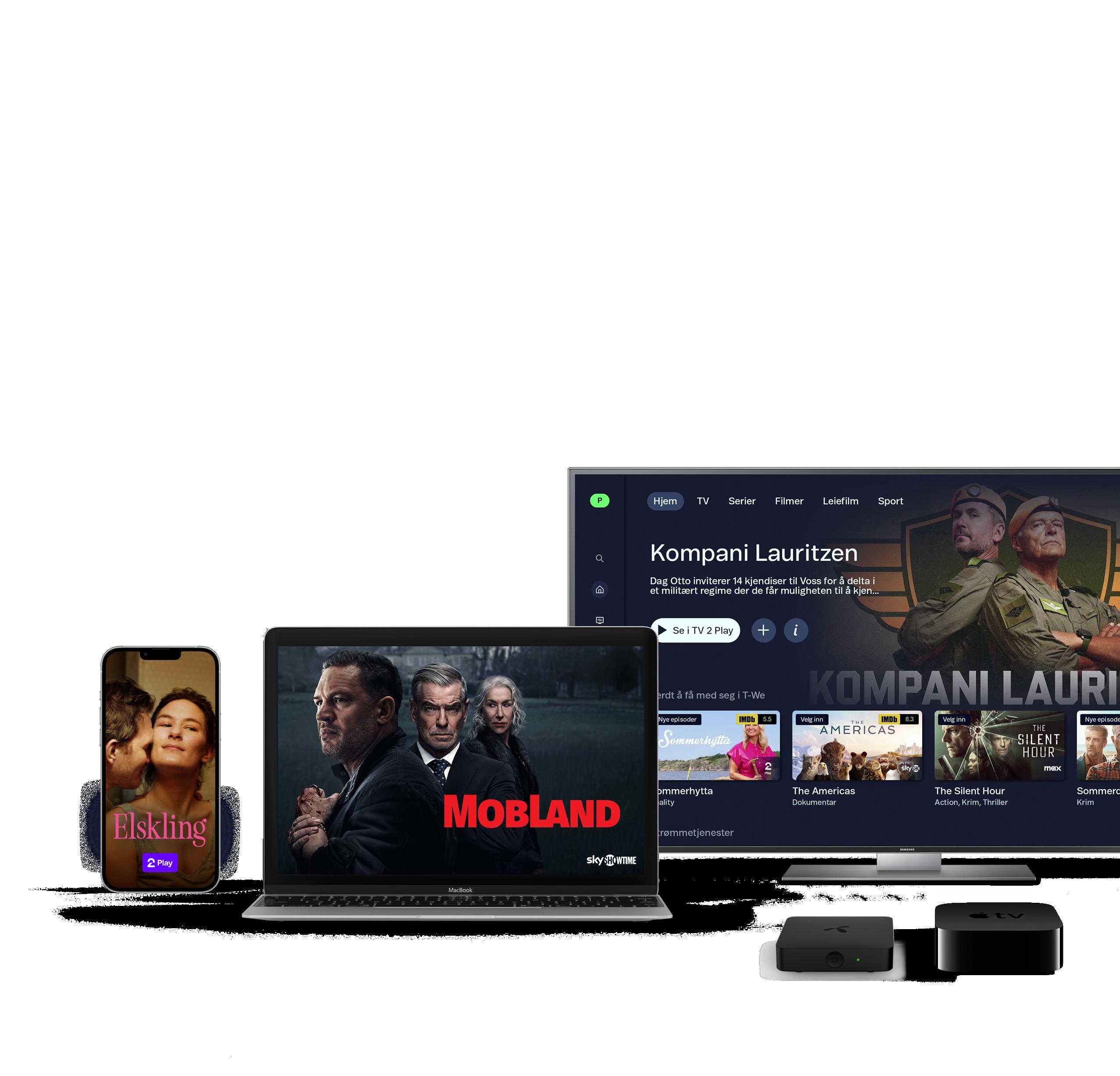 Med T-We kan du skreddersy ditt TV- og strømmeinnhold akkurat slik du ønsker. Velg blant et stort utvalg TV-kanaler og strømmetjenester. Alt samlet på ett sted, på den skjermen du ønsker.