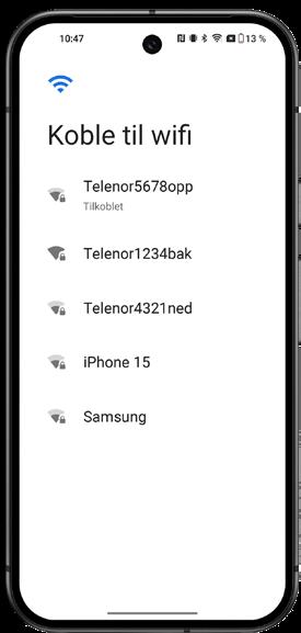 Merk: Hvis du får valg om å koble deg til 2,4 Ghz eller 5 Ghz nettverk, anbefaler vi at du kobler deg til 5 Ghz, som ofte gir bedre og mer stabil forbindelse.