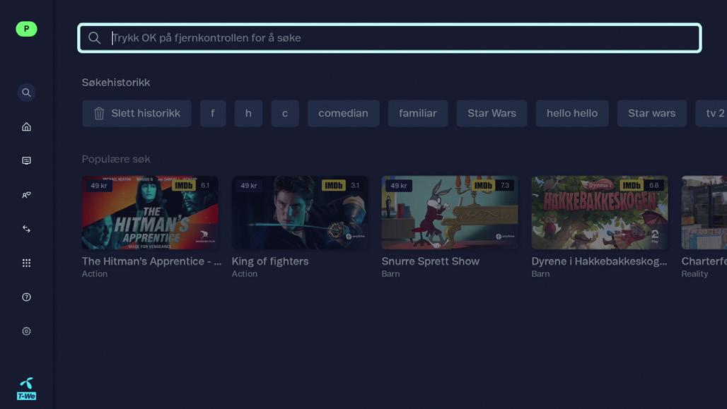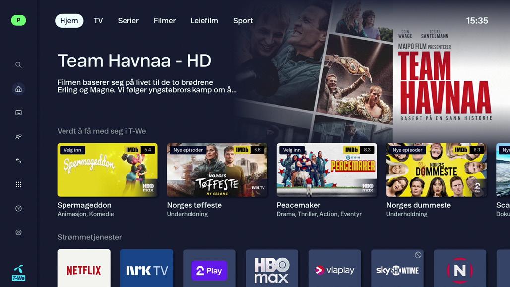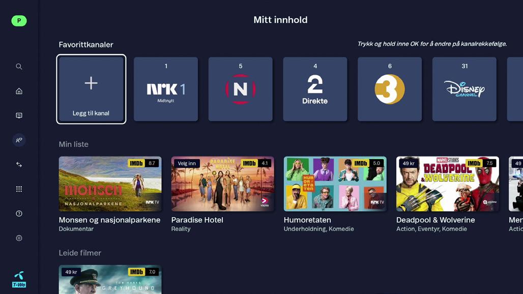 Merk: Siden T-We Boks III er en ren strømmeboks, betyr dette at du kan ta den med deg utenfor hjemmet, på hytta eller hvor som helst du har en stabil internett-forbindelse. Merk at noe innhold av rettighetsmessige grunner kan ha en begrensning på antall samtidige strømmer utenfor hjemmet.