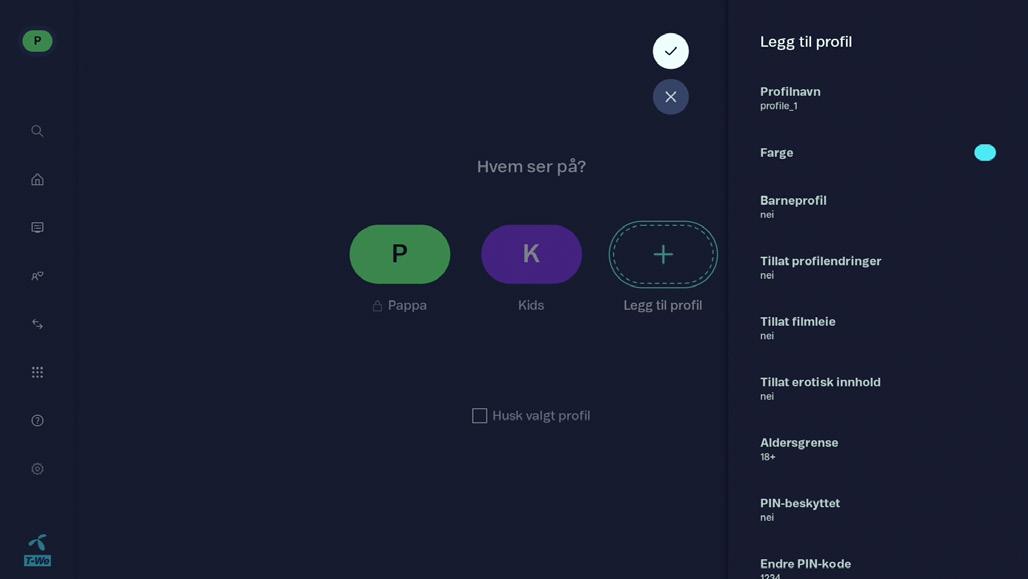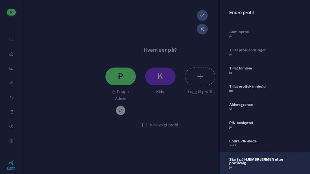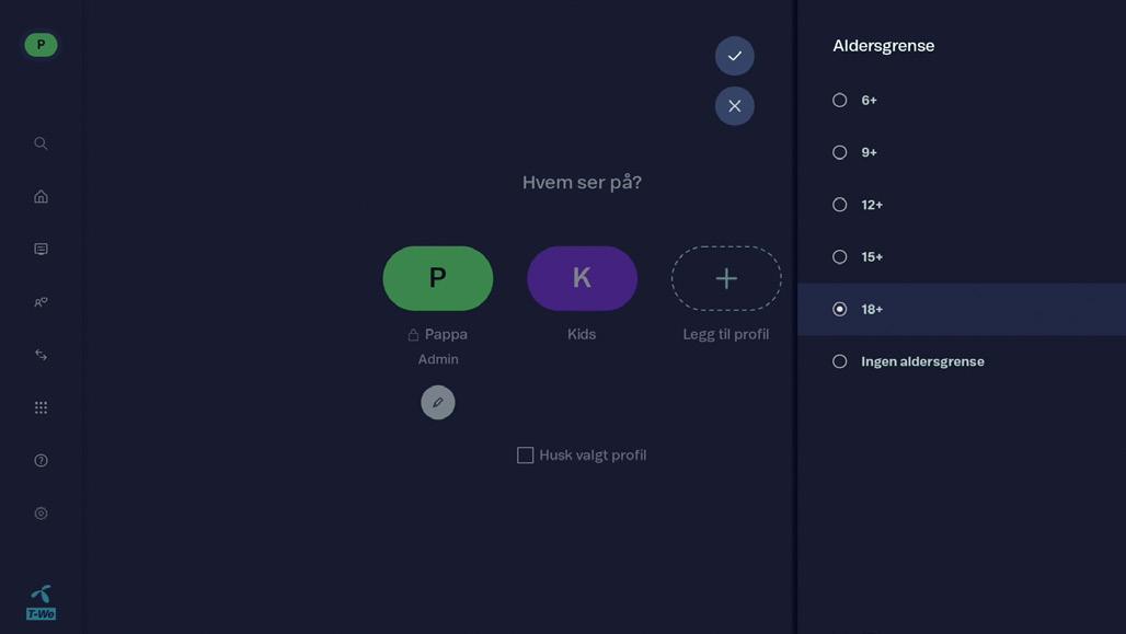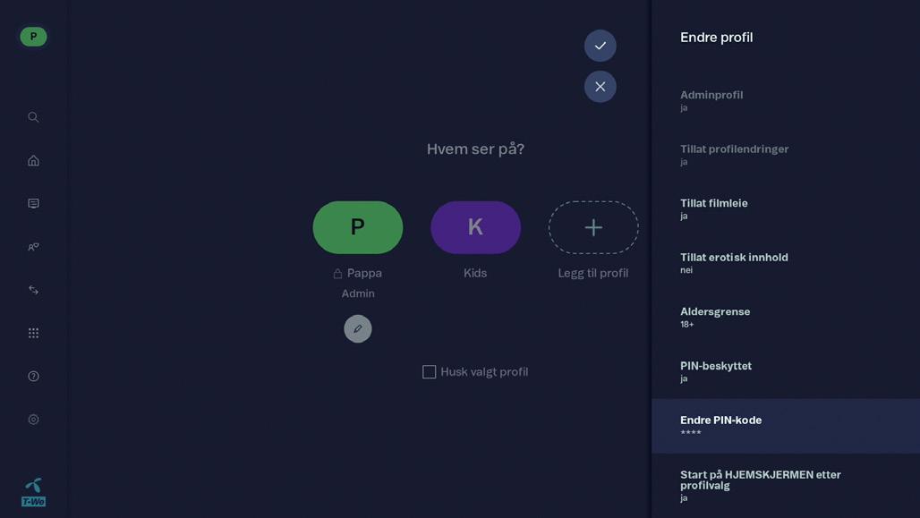 Programmet har aldersgrense høyere enn angitt i gjeldende profil. Lås opp med PIN-kode.