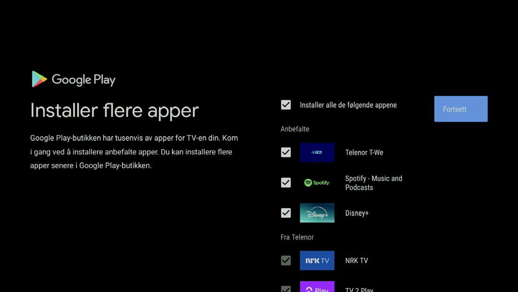 Hvis du ikke kan se velkomstbildene, må du sjekke at du har valgt riktig signalkilde på TV-en. HDMI-tilkoblinger på de fleste av dagens TV-er finner du når du trykker på knappen merket INPUT, SOURCE eller AV på fjernkontrollen til TV-en, ofte symbolisert med . Hvis du har problemer med å finne rett signalinngang, må du slå opp i TV-ens brukerveiledning. Navnet på inngangen bak på TV-en (f.eks. «HDMI 1») skal stemme overens med den inngangen du velger med TV-ens fjernkontroll.