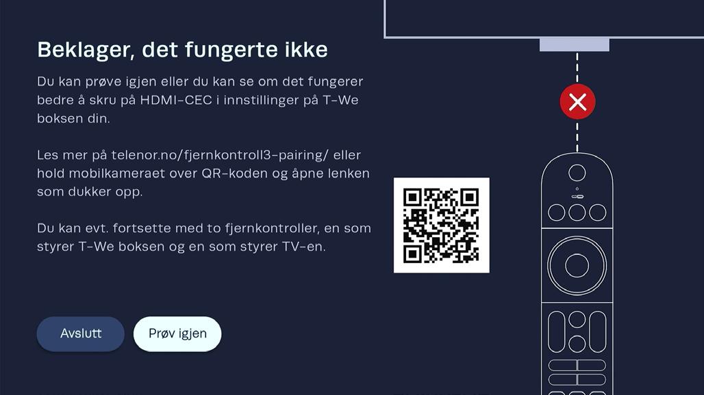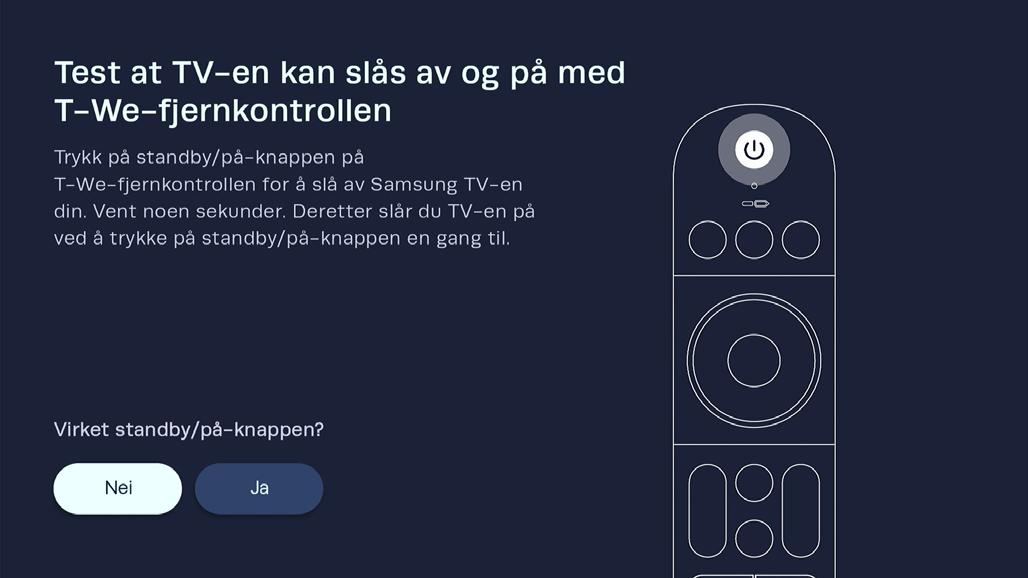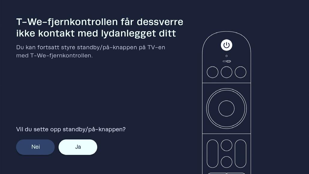 Problemer med å koble T-We-fjernkontrollen til TV-en, eller du opplever at TV-en slår seg av når du slår på T-We-boksen
