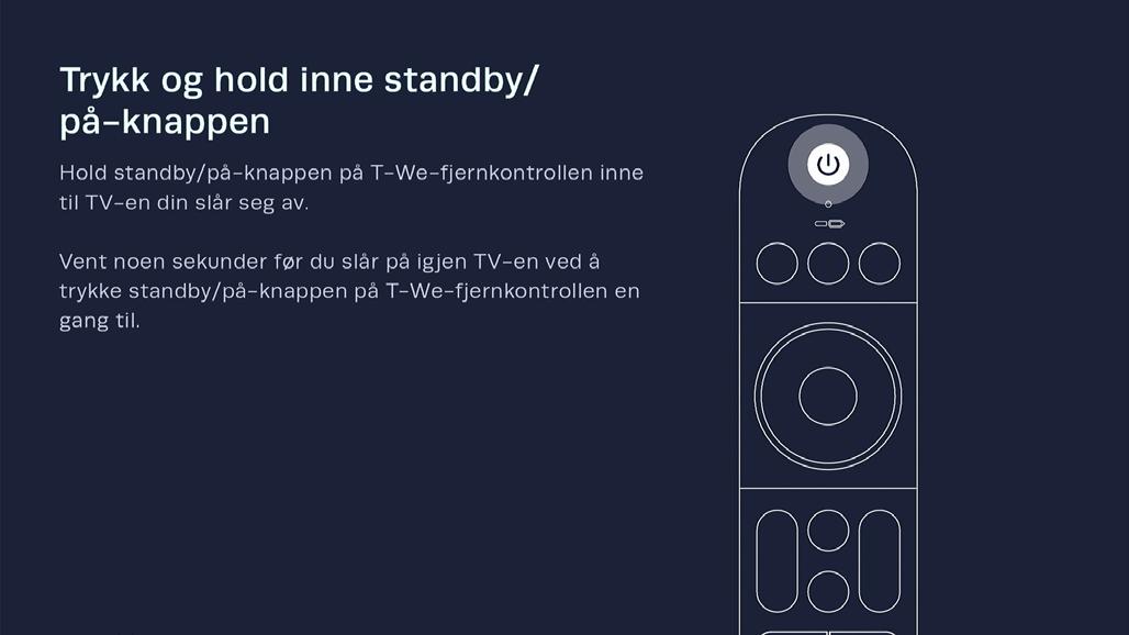 1. Prøv først om problemet løses ved å restarte T-We-boksen. Du gjør dette ved å holde inne i to sekunder og trykke når spørsmål om Slå av dukker opp. Alternativt kan du ta ut strømmen til T-We-boksen og sette den inn igjen.