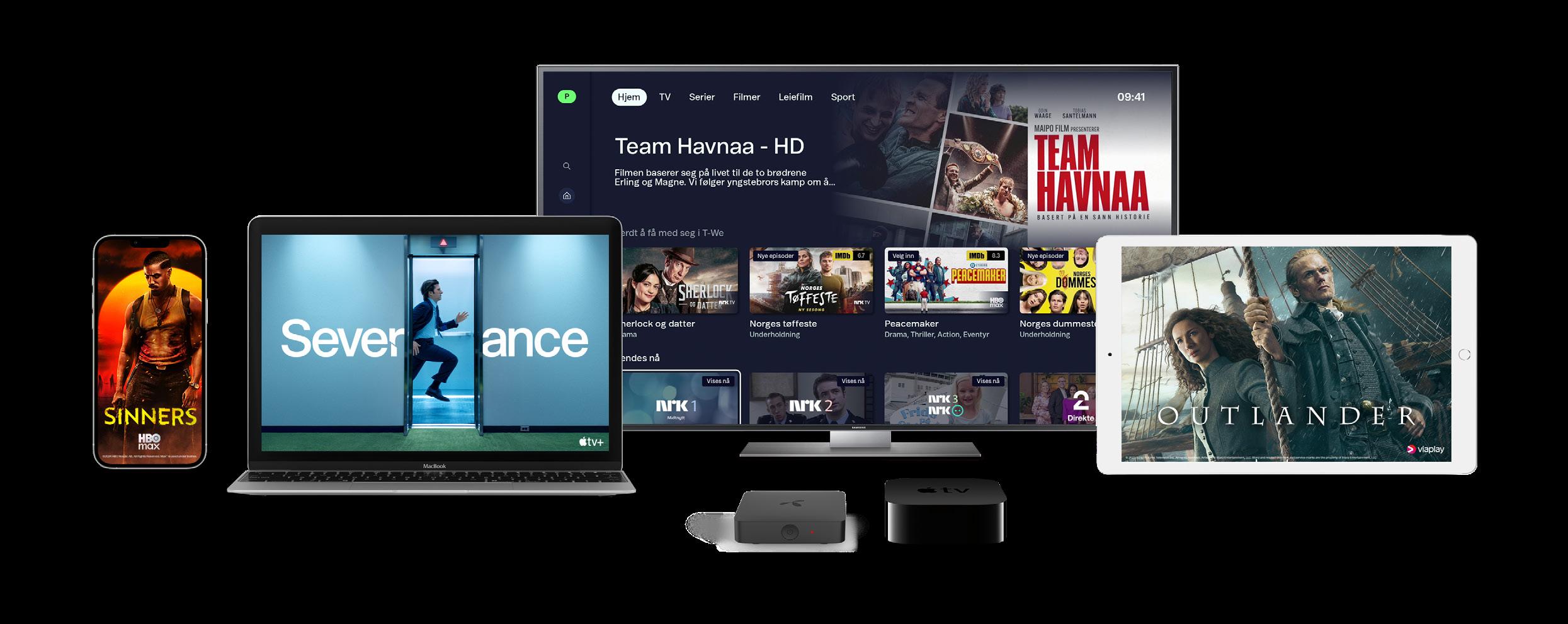 Med T-We har du tilgang til all TV-underholdningen og strømmetjenestene du ønsker, samlet på ett sted.