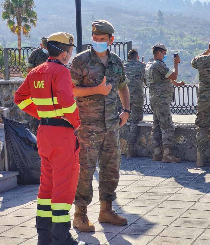 Fruto de la experiencia acumulada en los últi mos años, el protocolo de colaboración militar con la administración civil ha alcanzado un alto grado de madurez que asegura la agilidad en la respuesta, el uso más eficiente de los recursos y sinergia y coordinación de las actividades. Por ello, en cuan to se solicitó formalmente la aportación de capaci dades militares al Ministerio de Defensa, desde el mismo día de la erupción, todos los preparativos anteriores se tornaron en múltiples esfuerzos y ac