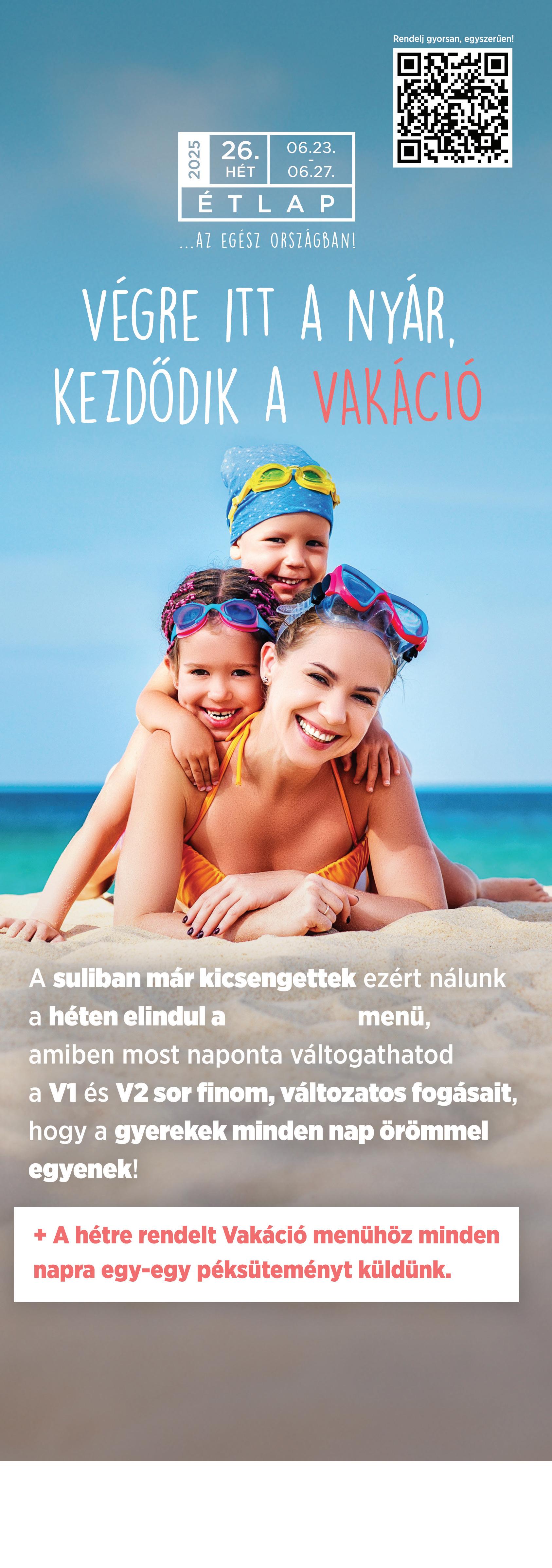 ✓ A nyári szünet alatt is számíthatsz ránk –a Vakáció menüvel levesszük a főzés, bevásárlás és menütervezés terhét a válladról, így több idő marad a közös élményekre!