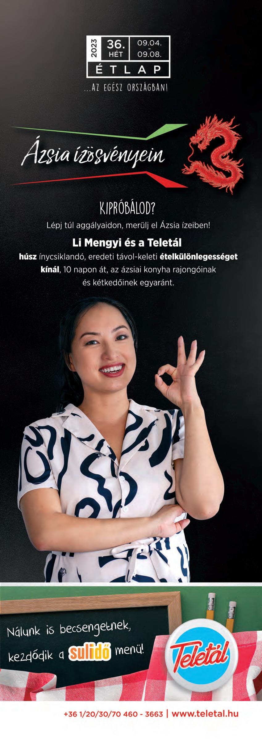 Hagyományos pékáru, levesek, húsos levesek, kedvencek, hidegkonyhai készítmények, főzelékek és zöldséges ételek, tészták, húsos tészták, főételek, Laci Bácsi ínyencségei, nyugdíjas menü, menü, extra menü, desszertek, sütemények, kenyerek, gyerek menü, frissítők. Zero (cukormentes, laktózmentes, gluténmentes) levesek, tészták, főételek, menü, desszertek. Czanik Balázs fitness edző ajánlata: Balázsfitness, Balázsfit, Office menü. Somogyi Kovács Anita dietetikus ajánlata: cukorbetegek részére, vegetáriánusoknak, kismamák részére, Dia desszert, búzacsírás teljes kiörlésű cipó, frissítők, Full Day menü. Országos étel-házhozszállítás szállítási díj nélkül, magas színvonalon, széles választékban, versenyképes áron 2001 óta. www.teletal.hu