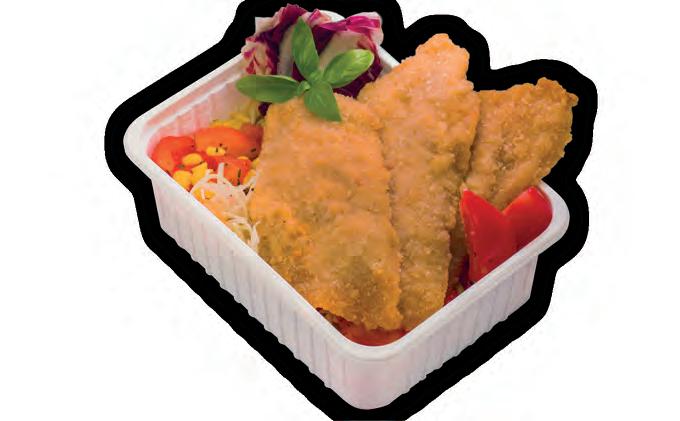 RÁNTOTT CSIRKEMELL, EXTRA SALÁTA (jégsaláta, sárgarépa, paradicsom, pritaminpaprika, fejeskáposzta, kukorica)