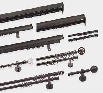 Az elegáns fekete szín továbbra is népszerű a lak berendezésben. Ehhez kínál új karnis megoldáso kat a Malom Kft. Az állandó raktári választék fe kete előlapos karnisokkal, fekete sínekkel, fekete profilkarnisokkal és matt fekete 19mm-es rúdkar nisokkal bővült. A trendhez igazodva roletta és sávroló szerelősínek is rendelhetők raktárról már fekete színben is. www.malomkft.hu