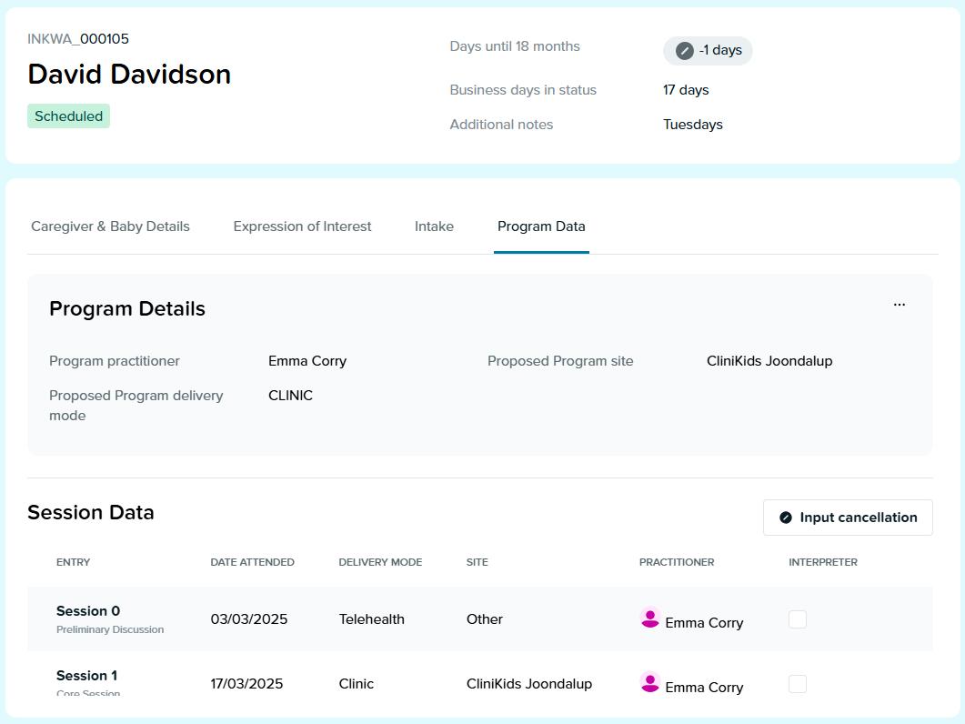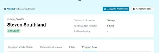 • Practitioner name - who is assigned to deliver the program to that baby.