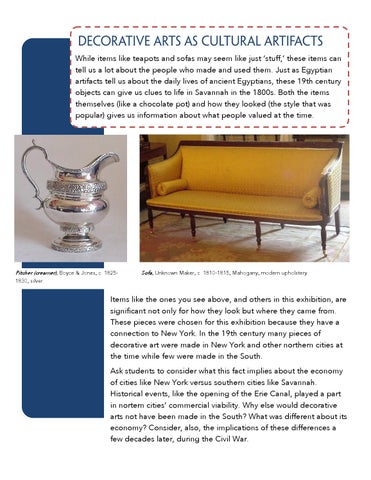 While items like teapots and sofas may seem like just „stuff,â€&#x; these items can tell us a lot about the people who made and used them. Just as Egyptian artifacts tell us about the daily lives of ancient Egyptians, these 19th century objects can give us clues to life in Savannah in the 1800s. Both the items themselves (like a chocolate pot) and how they looked (the style that was popular) gives us information about what people valued at the time.