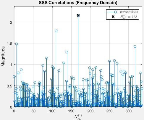 The SSS type signal in 5G is used to set the cell ID groups (������ (1)). Its design contains 336 sequences, 127 symbols each, and is mapped to the 3rd SSB symbol on 127 subcarriers. Mathematically, SSS sequences can be represented (3)