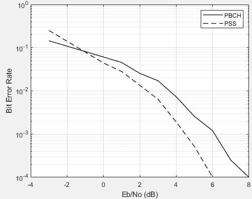 In Figure 12 shows the dependence of the bit error rate (BER) [7] on SNR (����/��0) for the PSS and the PBCH The frequency offset versus SNR for 5G mobile telecommunications is shown in Figure 13. We focus on the fact that structurally SS is formed by the SSS, PSS and PBCH signals, which occupy the first four OFDM symbols in the resource grid (Figure 4).