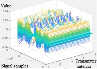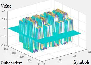In Figure 5 shows an image of a synthesized wave from a radio transmitter. The generated signal was fed to the model of the transmission channel in the form of TDL and thus the signal for the configured number of antennas was generated. The AWGN model was used. The resulting construction reflecting the PSS resource grid is shown in Figure 6.