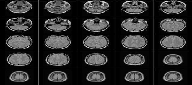 The proposed method applied on DICOM image of brain that consists of 25 slices, each slice consists of 2d matrix (256×256), each pixel represented by integer (16-bits). Figure 9 explain all DICOM slices of used image. The use of DICOM images is common in medical imaging, and the encryption of these images is important for ensuring patient privacy and data security. By applying the proposed method to a DICOM image of the brain, the authors demonstrate the effectiveness of their approach in encrypting complex and sensitive medical data.