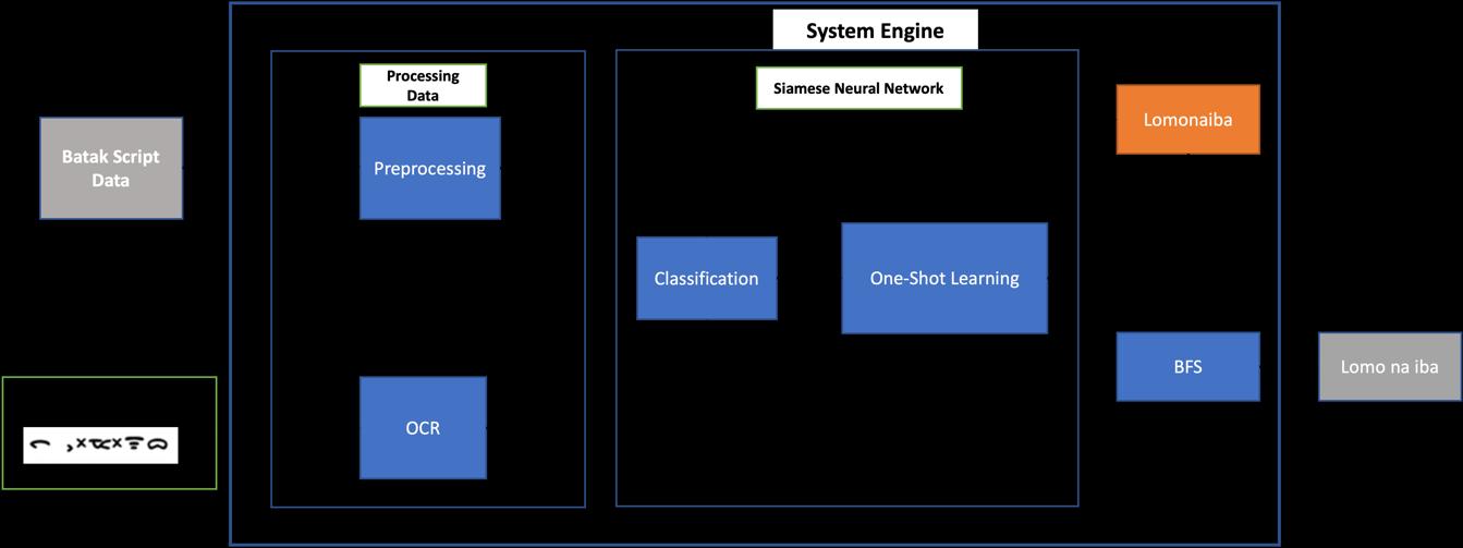 At this time Batak script learning is carried out self-taught or in elementary schools. With this problem, the research team will create a system that is able to help translate the Batak script. The system will be developed by a desktop-based research team and will change the Batak script taken using a camera. The system will identify the Batak script on the inputted image and convert it to the alphabet to form a word. The results of the Batak script reading performed by the system will be displayed on the monitor. The flow of the system can be seen in Figure 10.
