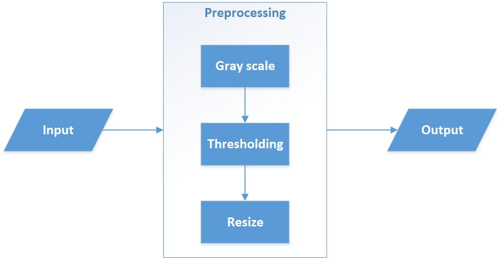 Preprocessing is one of the steps in image processing. The preprocessing stage aims to improve the quality of the image given. The preprocessing stage will be used to process the train data in order to meet the data requirements that can be processed by the SINN algorithm. The processes required by the data train for preprocessing are grayscale, thresholding and resize (Figure 6) [25]