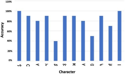 On the diagram Figure 13 shows that the average percentage of successful Toba Batak script recognition is 84.08%. The results show that letters A and Pa get 100% accuracy as the result of the highest accuracy and letters Ya get 40% accuracy as the lowest accuracy result. The letter Ya got the lowest accuracy because there are two parts of characters and sometimes it counts as two characters instead one. The test results of 8 images consisting of 10 and 12 characters of the mixed Toba Batak script can be seen in Table 6. From the test results, the average percentage of success in the recognition of the Toba Batak script is 74.13%. The results show that data 1 gets 91% accuracy as the highest accuracy result and data 3 gets 50% accuracy as the lowest accuracy result.