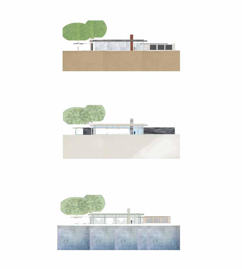The Chicken Point Cabin was a continued practice in using Photoshop to create a final rendering. Given the outlines for each view, the goal was to use sourced materials to create a tangible space as well as entourage to make the building a more realistic and comprehensible structure to the viewer.