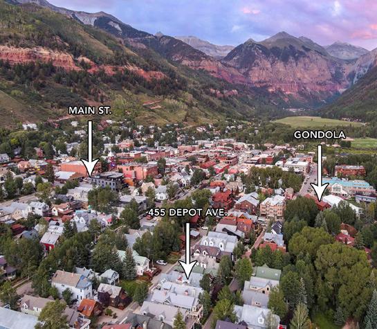 The Depot is nestled along the San Miguel River and just a short stroll to the Gondola, Historic Telluride's shops and restaurants. Built in 2002, 455 Depot has been impeccably well-maintained. The finishes are superb — granites, marbles, travertines, wide plank, recycled oak and hickory flooring, to name a few. The generous layout encompasses a theater room, bunk room, vaulted living/dining area with stone fireplace, chef's kitchen & primary suite with hot tub.