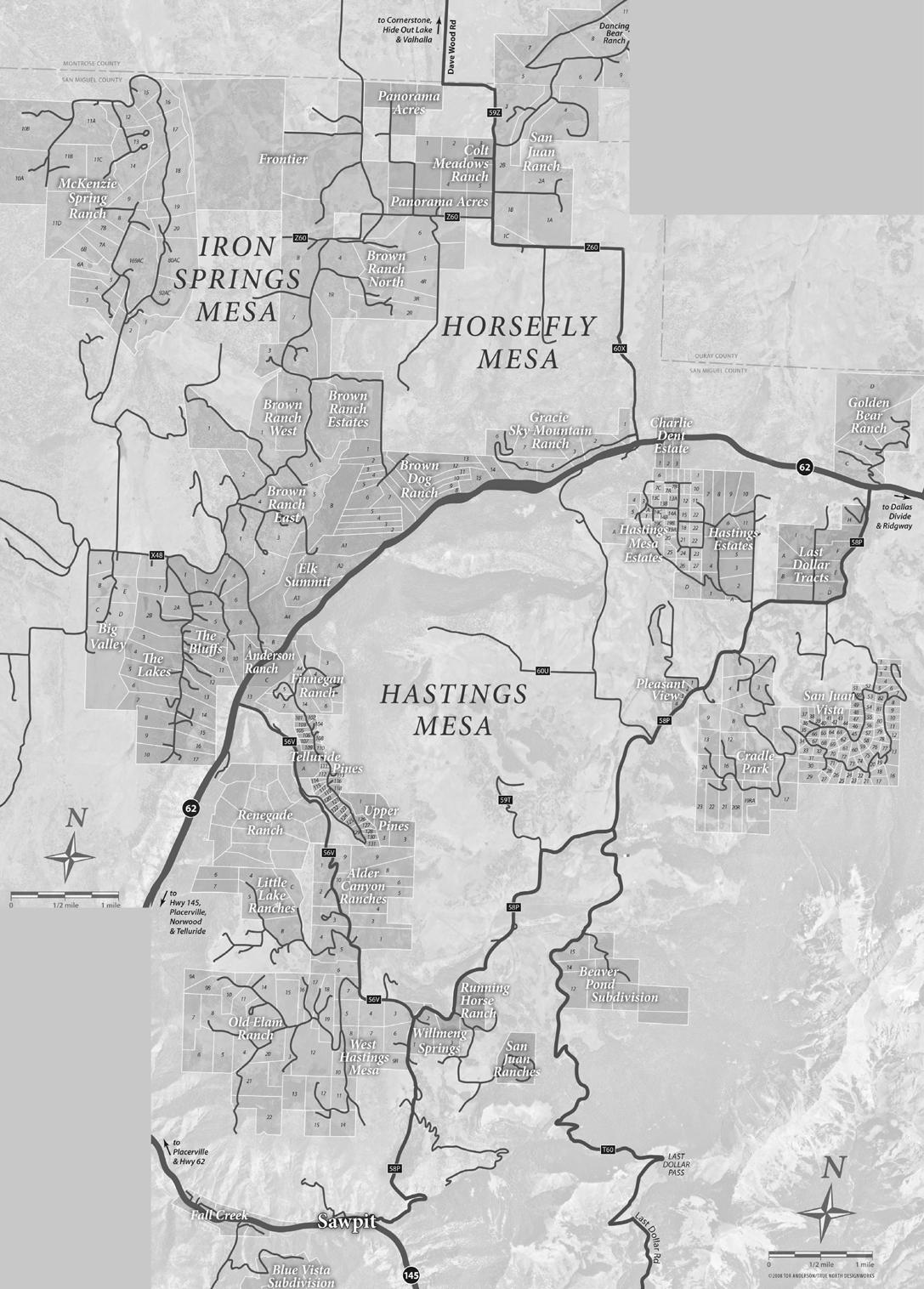 Hastings Mesa - 14+ m iles to Telluride Alder Canyon Ranches, Beaver Pond, Cradle Park Ranches, Finnegan Ranch, Hastings Mesa Estates, Last Dollar Tracts, Little Lake Ranches, Old Elam Ranch, Pleasant View, San Juan Vista, Telluride Pines, and Willmeng Springs