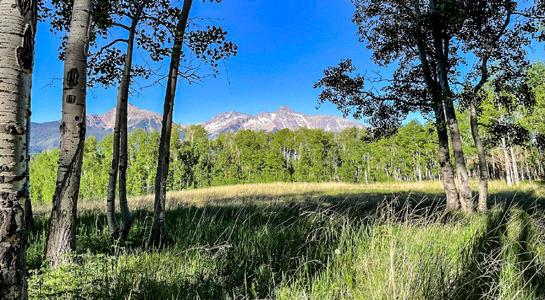 An exceptional lot located in a private cul-de-sac with big views to the North of the Sneffels mountain range. Excellent sun and buffer from the neighbors are had on this parcel which is larger than the surrounding lots. You will find a nice blend of aspen and spruce trees with a perfect benched area for your dream home. The water and sewer tap fee has been paid on this lot for a home up to 3,000 SF.