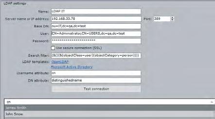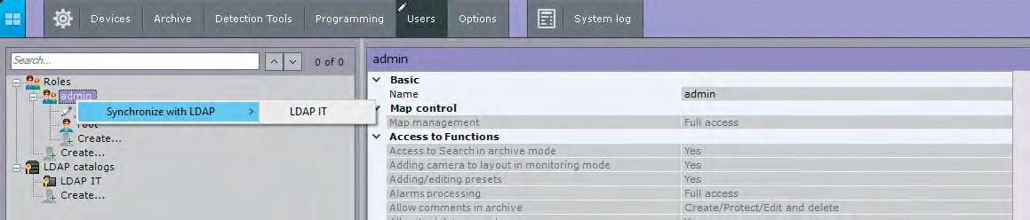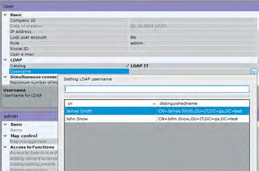 Esta característica hace posible eliminar las tareas de administración de usuarios duplicadas para los administradores de sistemas en empresas grandes. Los operadores pueden ingresar a un sistema de vigilancia al ingresar sus credenciales del dominio. El administrador de sistemas se conecta al directorio LDAP de Axxon Next y selecciona a qué usuarios agregar. También puede asociar los derechos de acceso del software de gestión de vídeo (VMS) con los grupos del directorio corporativo. Cuando se borra una cuenta de usuario del servidor LDAP, el usuario también se puede eliminar automáticamente en Axxon Next.
