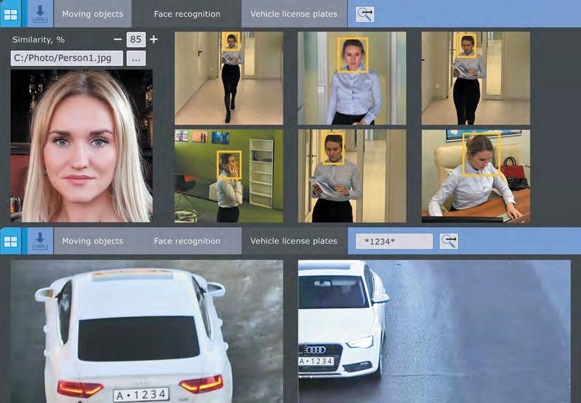 Axxon Next captura y reconoce los rostros de personas y los números de las matrículas de los automóviles. Puede comprobar rápidamente la fotografía de una persona o el número de un automóvil, total o parcialmente, contra el material grabado. También se puede buscar en varias cámaras de vídeo.