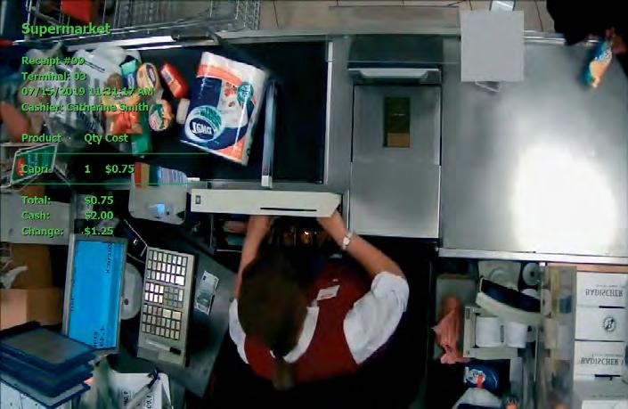Axxon Next recibe información de las cajas registradoras y la liga a los flujos de vídeo. El texto del recibo se sobrepone en el vídeo o se muestra en un panel separado. Esto ofrece una imagen completa de lo que sucede en el proceso de pago. Puede utilizar la información del recibo para recuperar las grabaciones de los vídeos de la transacción en el punto de venta.