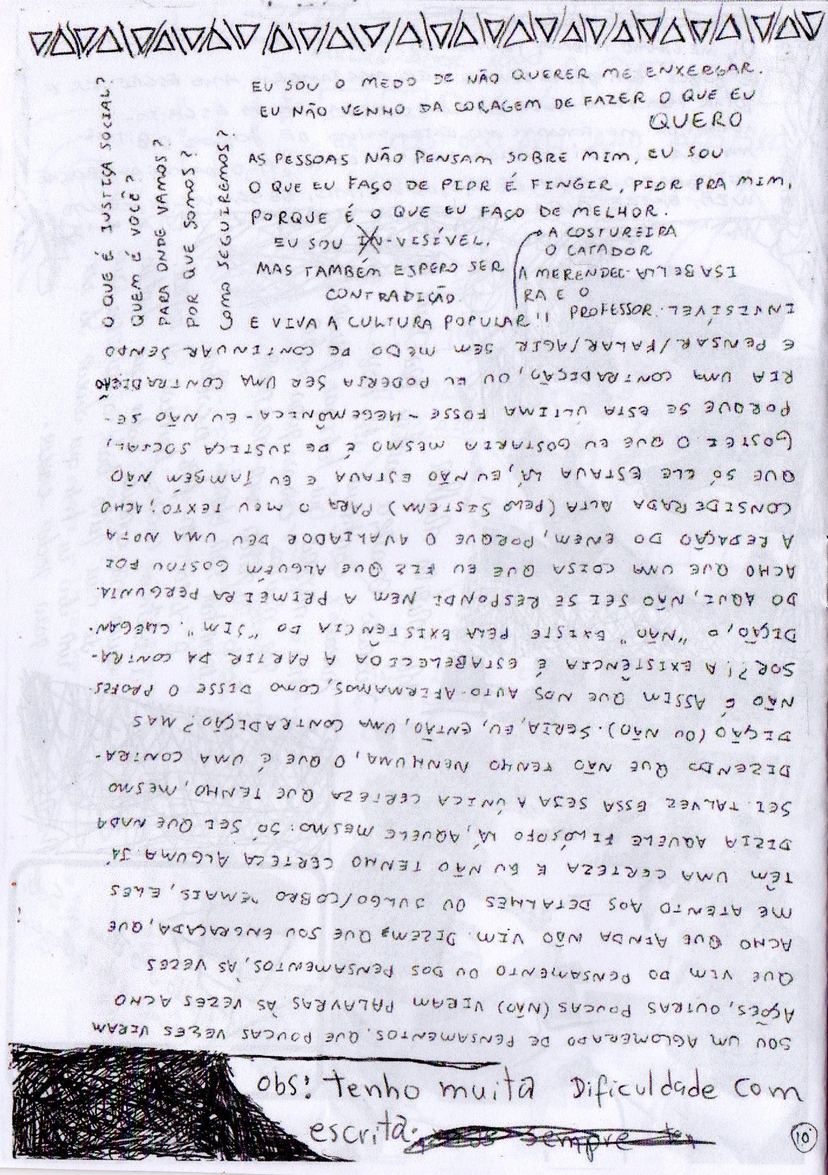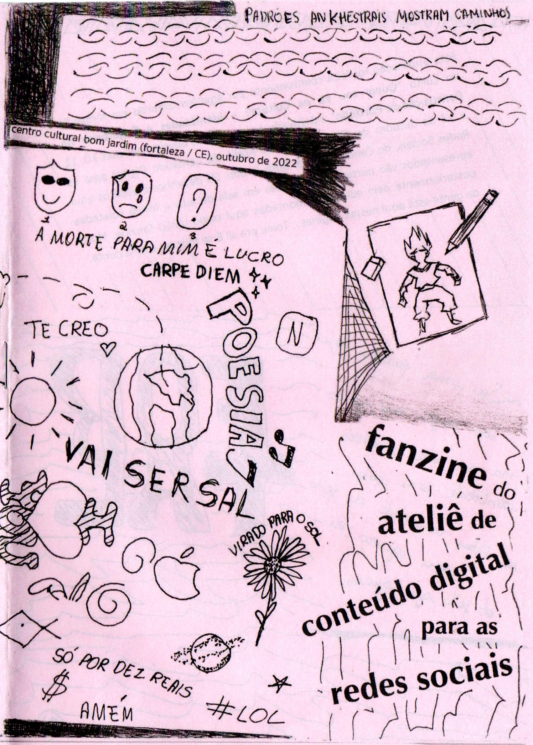 Esta publicação foi feita coletivamente por agentes culturais em formação no curso “Quem sou eu na Cultura? – Identidades e Trajetórias na Construção do Portfólio”, ministrada por rodrigo de oliveira, nos dias 24, 26 e 28 de outubro de 2022, dentro do Ateliê de Conteúdo Digital Para as Redes Sociais, do Centro Cultural Bom Jardim. Os desenhos e escritos aqui apresentados são parte das produções em sala de aula e foram coletadas posteriormente pelo educador, montadas aqui como um(a) fanzine. Muito da gente está aqui nestas páginas… Tome pra si! E se misture com a gente.