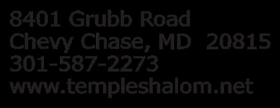 Donations may also be mailed to: Accounting Manager, Temple Shalom, 8401 Grubb Rd., Chevy Chase, MD 20815. Please specify the occasion or person being honored or remembered, the fund for your donation and the name and address of who should be informed of your contribution.