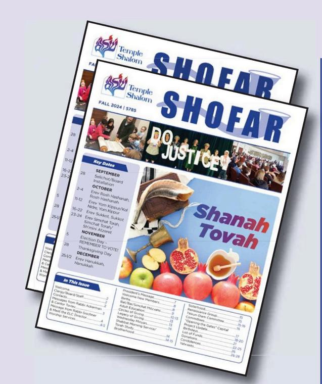 Thank you to all who contributed to and have provided support for the Shofar. Your dedication to the Temple Shalom community is what makes this newsletter possible.