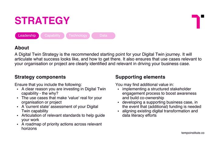 This module helps you build the necessary strategy and leadership capabilities to advance your Digital Twin journey This module is highly interactive, uses templates, and equips you with a Digital Twin Roadmap