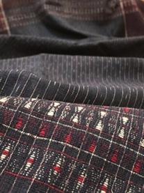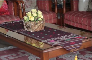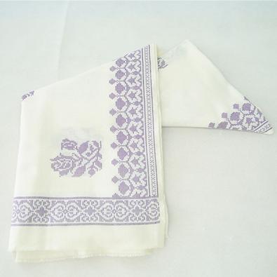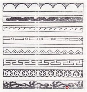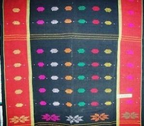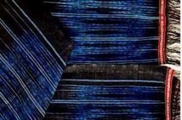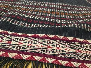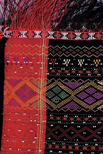 Ujungnya diakhiri dengan pita pintal, biasa disebut sirat. Memisahkan batas samping dari bidang tengah adalah garis panjang dari pekerjaan warp komplementer sederhana, disebut juga dengan benang katun putih.