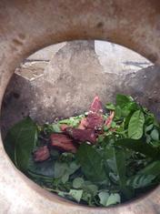 Dilakukan dengan membuatbubur nasi dan dapat ditambahkan daun seledri atau pandan yang dioleskan pada benang. Tujuannya adalah agar benang menjadi kuat, terurairapi dan berkilau.Kegiatan ini dilakukansebelum proses mangani.