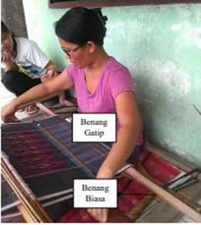 Motif khusus yang terdapat pada benang , bagian dari pewarnaan yang dilakukan pada mengikat bagian yang dikehendaki. Benangbenang yang telah diwarnai (gatip) dari pemasok dalam bentuk gulungan atau humpalan. Sedangkan benang biasa didapatkandalam bentuk kiloan.
