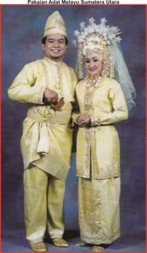Pakaian adat Melayu untuk wanita berupa baju kurung atau kebaya panjang dipadukan dengan songket. Baju kurung terbuat dari brokat atau sutra yang dihiasi dengan detail-detail berwarna emas. Sementara pria Melayu memakai pakaian adat yang disebut teluk belanga, yang terdiri atas baju berkrah kocak musang, dan dipadukan dengan celana bermotif sama.
