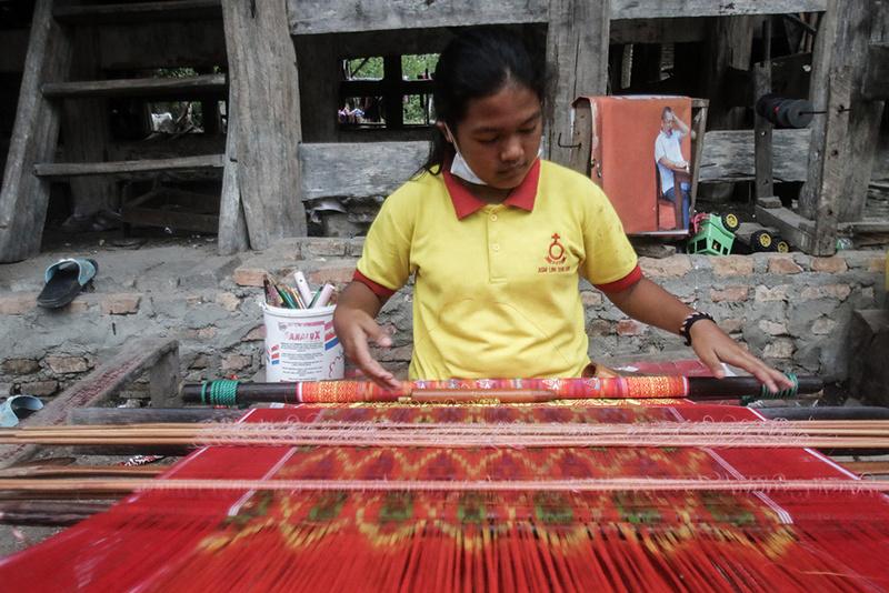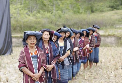 Setelah benang disusun (mangani), selanjutnya adalah proses menenun. Partonunadalah sebutan untuk orang yang menenun.
