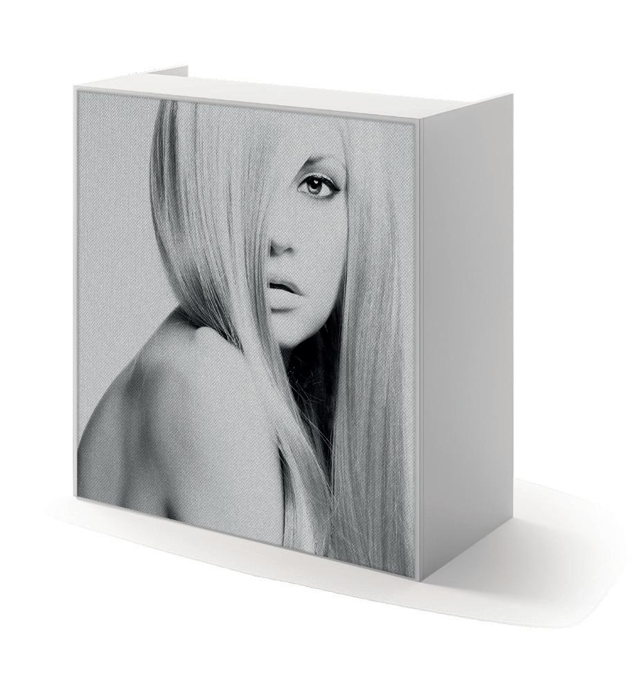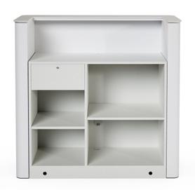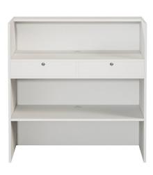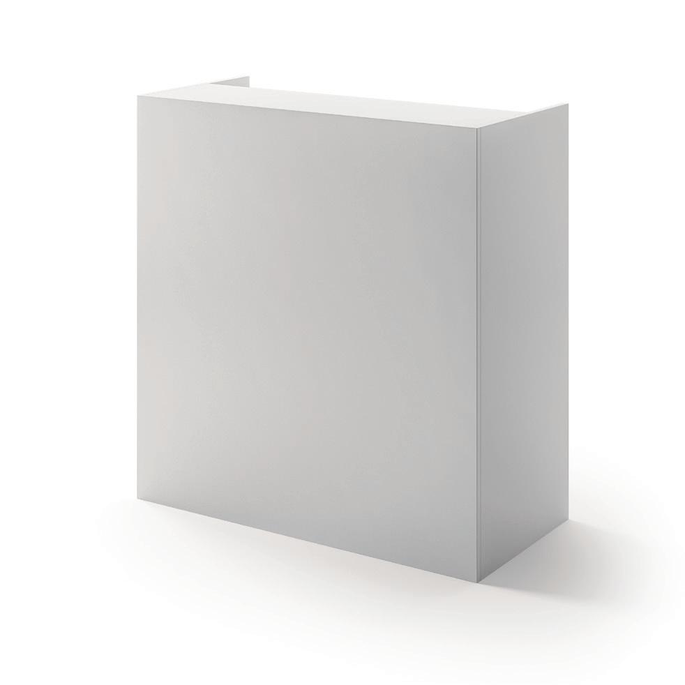 Reception-desk with matt white structure, matt white lacquered frame and front panel, matt white solid core top