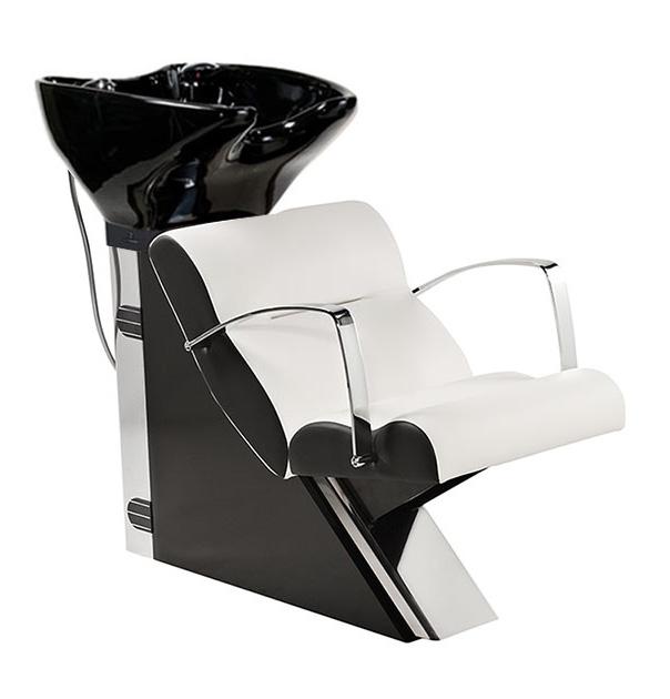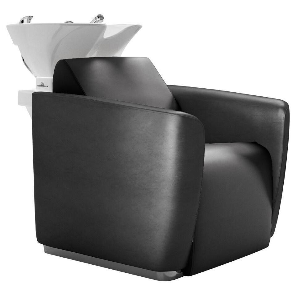 Backwash with electrical legrest and Shiatsu air massage. White basin G1, drop-stop system. Skai color black B01