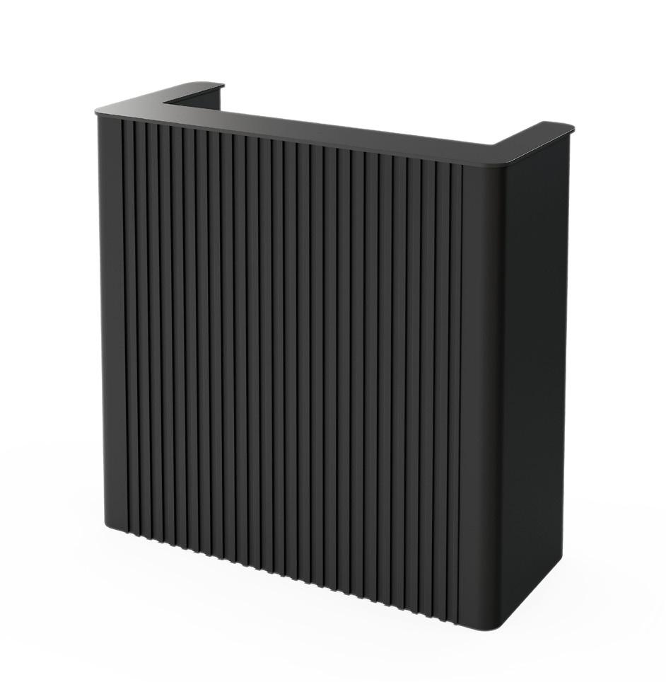 Reception-desk with matt white structure, matt black lacquered frame and front panel, matt black solid core top