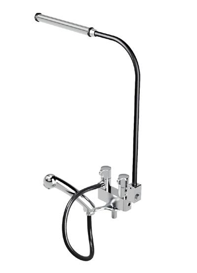Folding rod: can be tilted into working and resting positions. Double taps: allow you to choose between closed/open for the hand shower and for the waterfall effect with two independent regulators.